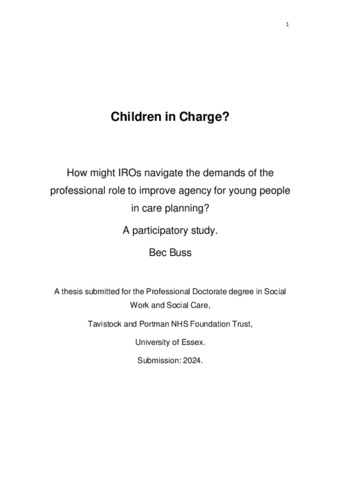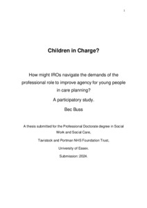 Buss, Bec (2024) Children in Charge? How might IROs navigate the demands of the professional role to improve agency for young people in care planning? A participatory study. Professional Doctorate thesis, Tavistock and Portman NHS Foundation Trust / University of Essex. Full text available