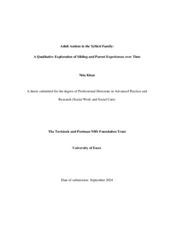 Khan, Nita (2025) Adult autism in the Sylheti family: a qualitative exploration of sibling and parent experiences over time. Professional Doctorate thesis, Tavistock and Portman NHS Foundation Trust / University of Essex. Full text available